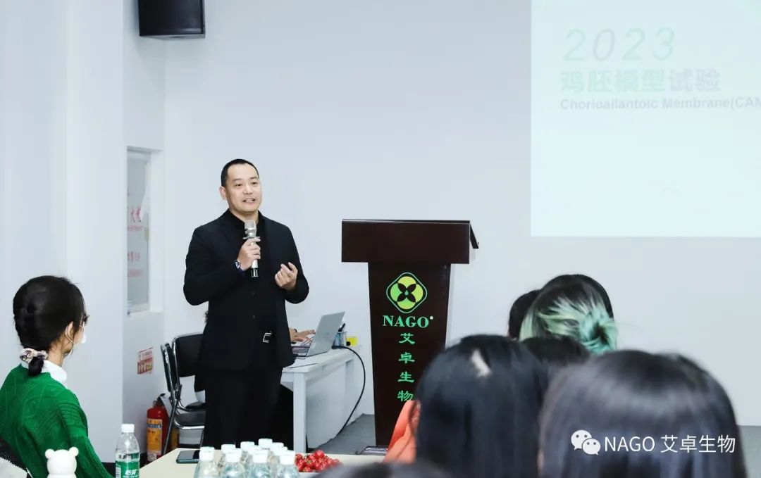 艾卓生物技術支持林碧甄為各位師生講解關于雞胚模型在化妝品安全性評價中的應用。